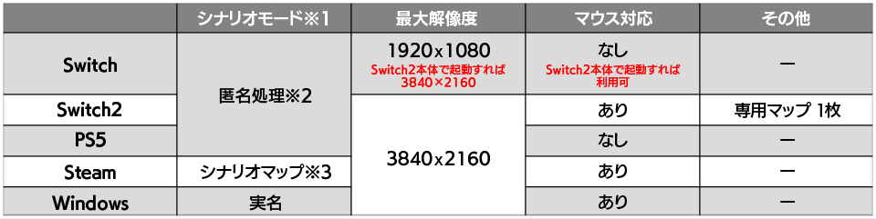 プレイする機種によって、シナリオモードの表現や周辺機器の対応状況が一部異なります。ご購入前に対応情報をご確認ください。