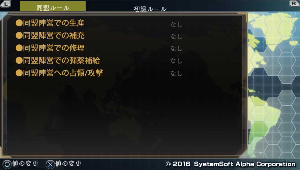 「大戦略」のゲームに関する約50種類のルールを全て変更することが可能です。これにより自分好みのルールで遊ぶことができます。
