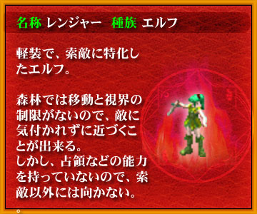エルフの血を引いているため、ロー系の種族との交流を行っている。