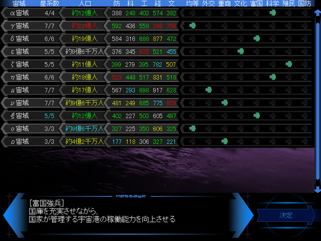●「政策決定」画面のパラメータ表示色が、前期から上昇したものと下降したもので変化する様になりました。