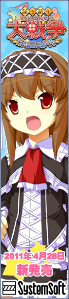 <a href="http://www.ss-beta.co.jp/products/moegd/" target="_blank"><img src="http://www.ss-beta.co.jp/products/moegd/image/download/banner/banner_4_est.jpg" width="468" height="100" border="0" alt="『萌え萌え大戦争☆げんだいばーん』応援中!!" /></a>