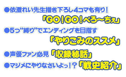 「まだまだ萌えて、燃えてくれ!!」を合言葉に、じっくり読めちゃう企画ページも作りました。 そして、本書のために、依澄れい先生が4コマ漫画を描き下ろし!
