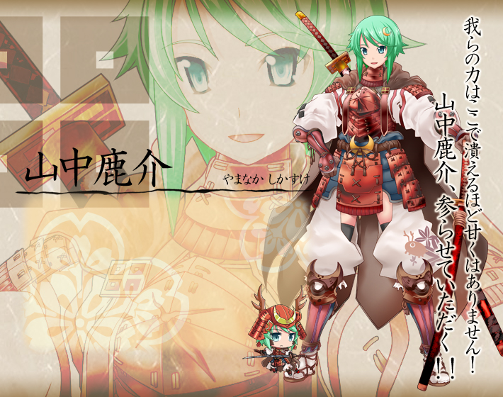 尼子家家臣。非常に男前で頼りになる人物。戦に出れば必ず手柄を立てるほど優秀な武将でありながら、その手柄を当然のように他者に分け与えてしまうほど大きな器量の持ち主。当主の不幸体質故か、すっかり落ちぶれてしまった尼子家を憂い、かつての隆盛を再び、と尼子家の再興を志し、日々月に祈っている。