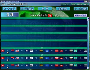 監督設定は、ゲームを開始した直後に表示される、"日程画面"の "ミーティング" ボタンをクリックすることで、設定の変更ができるようになります。