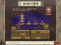 - 今回新たに加わった「兵練」コマンドと「船舶の運用」コマンドでは、野戦と海戦における各陣形で配置する部隊の兵科(槍、弓、騎馬、鉄砲)を決定することができる。(なお、鉄砲は伝来するまで使用することができない。)また、各部隊にはそれに応じた年間費用が必要となってくる。